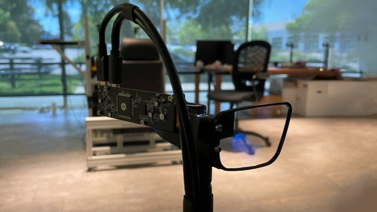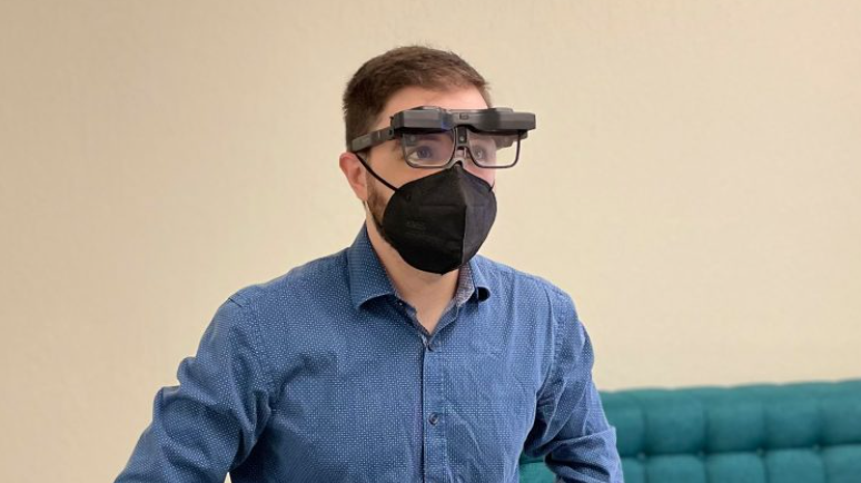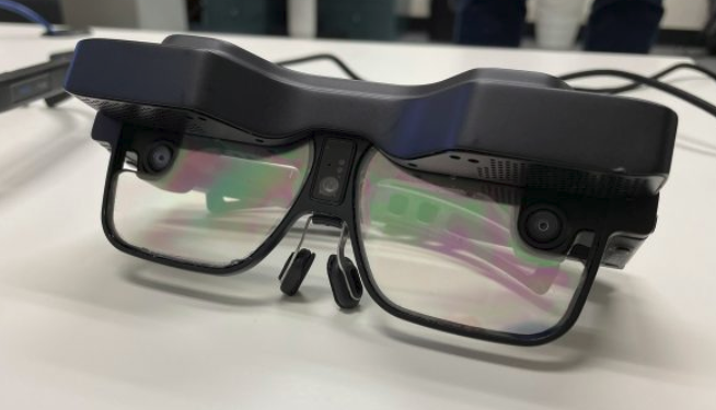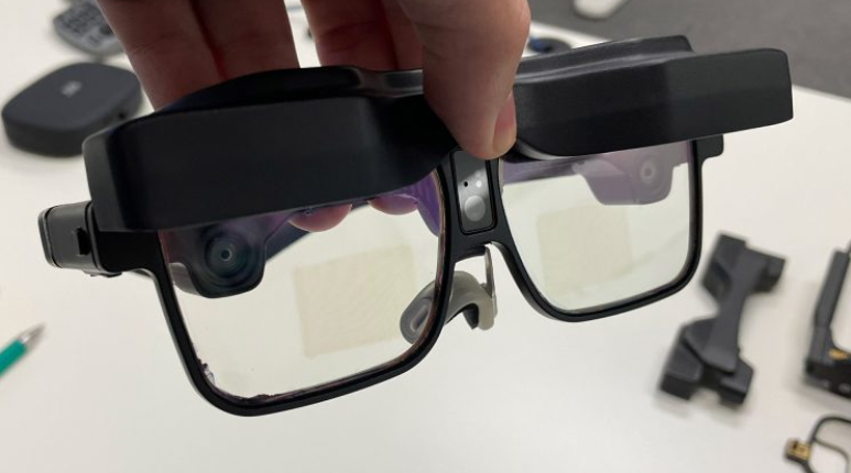 在最初的演示之后,我得以体验Design v1本身。考虑到它是完全一体式,它的体积小得出奇。尽管你可以插入外部电池以延长续航,但所有一切都内置在眼镜之中,包括骁龙XR2处理器、传感器、内存等。