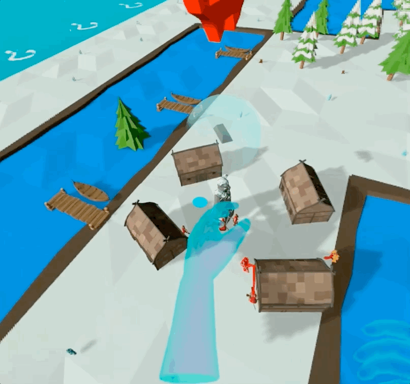 基本的玩法还是比较简单的,只需要动动手指,玩家就可以享受到在VR里搞基建的快乐,打碎固有的世界地图,重新构建,你可以把雪山放在沙漠中间,每个村落旁边都被群山环绕,或者看着人类村庄逐渐繁荣,不同地面发展出非洲、亚洲、阿拉伯、爱斯基摩等不同风格的村落,获得极大的成就感。