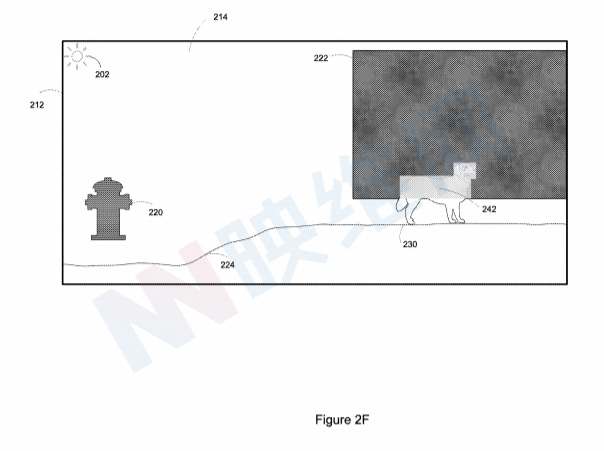 如上面专利图2F所示,从蓝色墙壁反射的阳光干扰了数字狗狗的显示。蓝色墙壁与数字狗狗的上半身重叠。所以,墙壁的蓝色与数字狗狗上半身的白色混合,使得数字狗狗的上半身为浅蓝色而不是优选白色。
