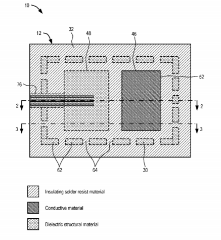专利描述的装置包括具有模塑料的显示封装;布置在所述显示封装顶面上的多个发光二极管(LED)管芯,其中所述多个LED管芯的每个LED管芯包括多个LED;嵌入所述显示封装的模塑料中的底板模,其中所述底板模电耦合到所述多个LED模的每个LED模;以及嵌入所述模塑料的至少一个间隔结构。底板模和至少一个间隔结构一起为布置成在显示封装顶面上的多个LED芯片提供机械支撑和平面对准。所述至少一个间隔结构具有第一热导率,并且所述模塑料具有低于所述第一热导率的第二热导率。