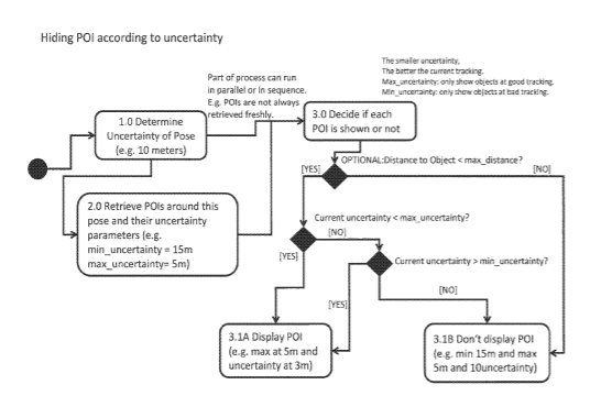 专利描述的信息处理设备包括控制单元。控制单元参照指示移动体的位置和方向的位置和方向信息,然后控制显示器将与现实世界设定位置相关联的虚拟对象叠加在现实世界。信息处理设备同时包括校正位置和方向信息的校正单元。当所述位置和方向信息从第一位置和方向信息校正为与所述第一位置和方向信息不连续的第二位置和方向信息时,控制单元控制显示器以执行转换显示,所述转换显示指示显示条件从基于第一位置和方向信息显示虚拟对象的第一显示条件转换到基于第二位置和方向信息的第二显示条件。