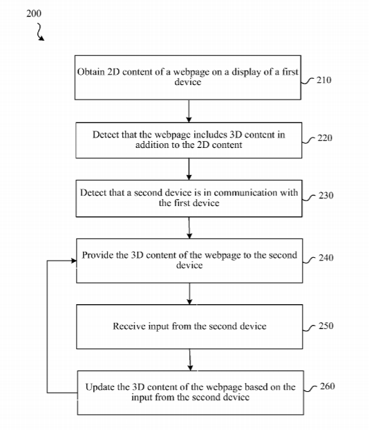 专利描述的技术允许第一设备获取网页引用的2D内容,并允许与第一设备通信的第二设备显示与所述2D内容相关联的3D内容。在一个示例中,检测到网页引用与2D内容相关联的3D内容,并且检测到能够显示所述3D内容的第二设备链接到第一设备或与第一设备通信。在一个示例中,第二设备接收用户查看三维内容的输入,并响应地显示包括三维内容的三维环境。