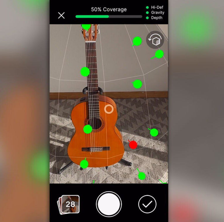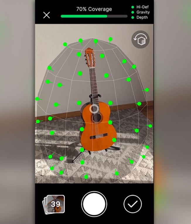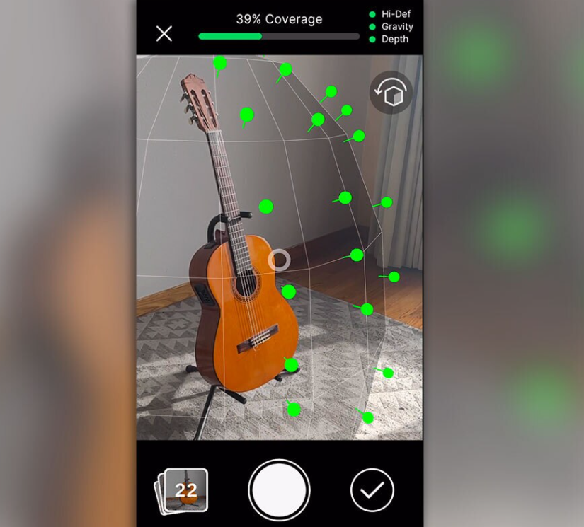 尽管引导对象并不严格必要,但用户反馈表明,它对于帮助用户如何拍摄最佳图片而言非常宝贵。除了引导对象,团队同时纳入了照片别针,以显示你已经拍摄过的照片角度和低质量的光电检测和反馈。