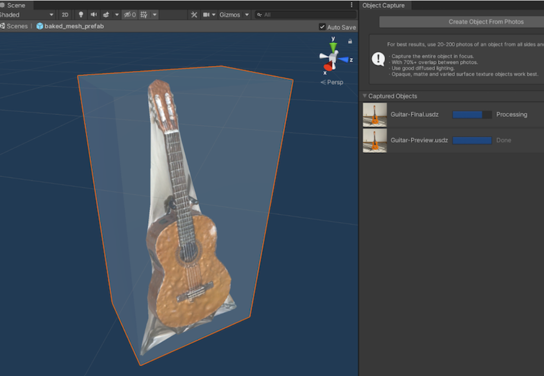 但团队更感兴趣的是,现在日常设备都能够访问这个功能强大的工具集,从而为非开发者打开内容创建和管理的大门。当开始这个项目时,Unity收集了这项技术的一系列用例,并很快意识到它的影响远不止游戏。例如,一家音乐商店的店主以前仅限于发布乐器的图像,而现在店主可以使用Object Capture来创建令人惊叹的、逼真的、高质量的、易于共享的乐器模型,并随时通过在线方式实现共享。