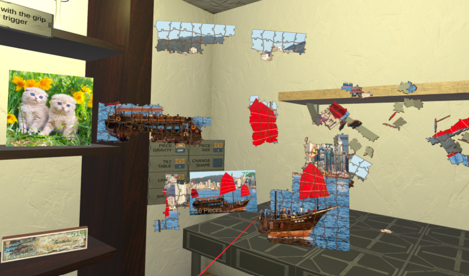 简介:喜欢拼图游戏吗?现在,你将能通过VR在身临其境的3D空间中开玩30个不同的拼图。值得一提的是,你可以将任何PNG或JPG图像添加到“Pictures/JigsawPuzzleVR”文件夹中,以便在下次启动时将它们变成拼图。