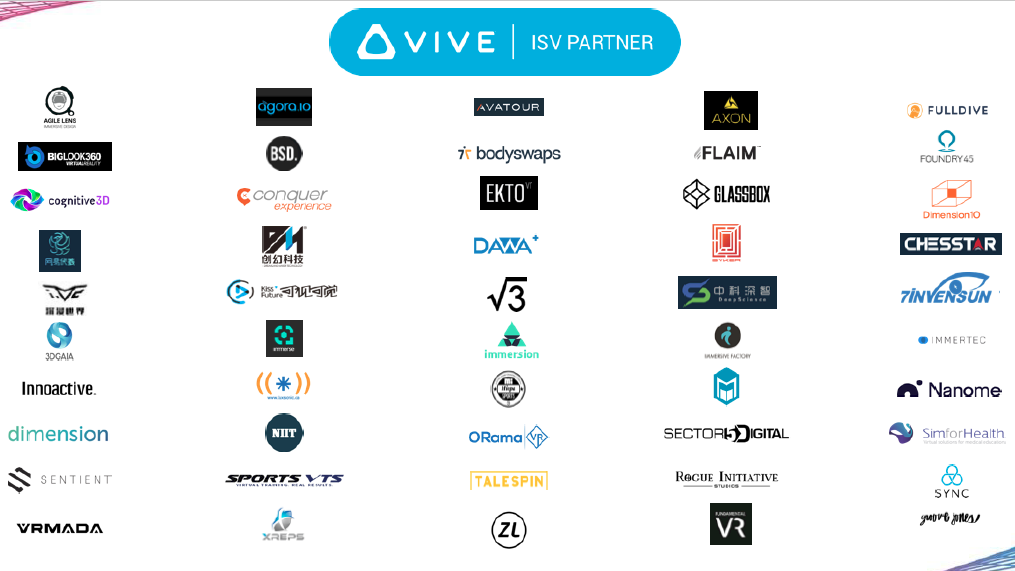 为了满足需求多样的商业市场,仅有HTC Vive第一方的软件/解决方案是不够的,所以HTC Vive还在构建第三方软件/解决方案合作伙伴生态——ISV计划,并推出了专门面向商业市场的软件应用分发商店Vive Business AppStore,以满足更广泛的特定需求和各种生产就绪商业需求。涵盖远程协作、训练、教育学习、医疗康复、市场图形化、工业设计等。HTC V ive的首批ISV计划在全球吸引了50多家合作伙伴加入,其中有10家来自中国。