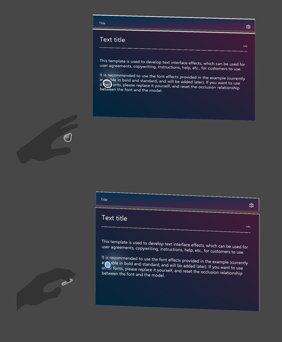 本次更新,还优化了手势效果,不再有【手势射线】指引方向,更改为【椎体模型】指引方向,还添加了椎体模型的描边效果。还有显示界面的手势模型默认关闭状态,开发者也可在配置文件中打开手势模型。