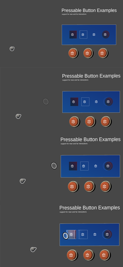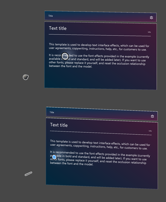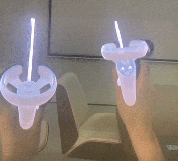 不仅如此哦~!我们还提升了手柄移出视野后再移入时的重找回速度和成功率!这使得手柄在任意范围的运动过程中,都非常平滑,再配上双手柄,开发者可以充分发挥自己的创意,创作最酷炫的MR应用了。另外,之前使用的【虚线指引射线】变成【色值渐变指引射线】啦~ 同时将原先的【空心光标】优化为【实心光标】哦!