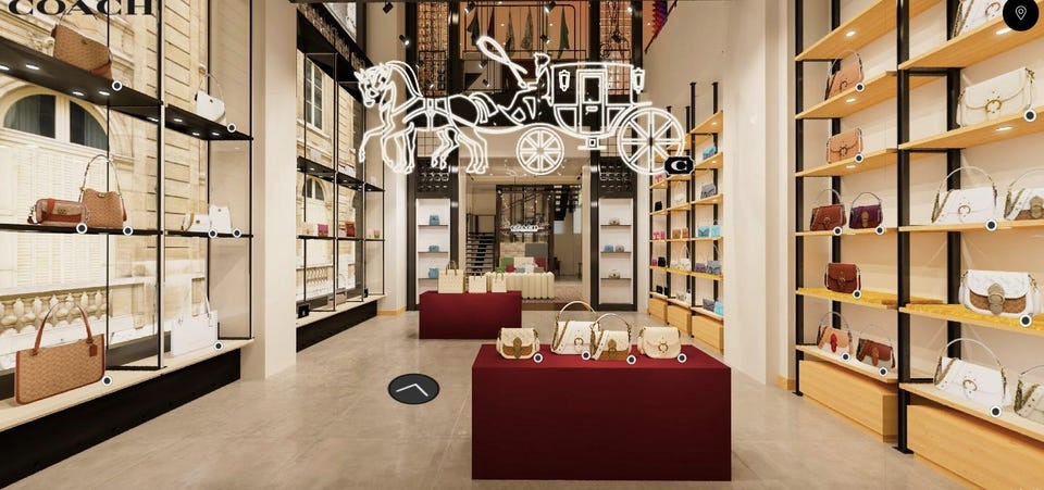 辛格进一步指出,Obsess的技术可以帮助品牌创建任何环境:“有了我们的技术,你就不受实体空间的限制。你可以把它变成一个星球,或者可以把它变成水下世界,品牌正变得越来越有创意。”例如,Coach创建了一个复刻其第五大道旗舰店的3D虚拟展厅。
