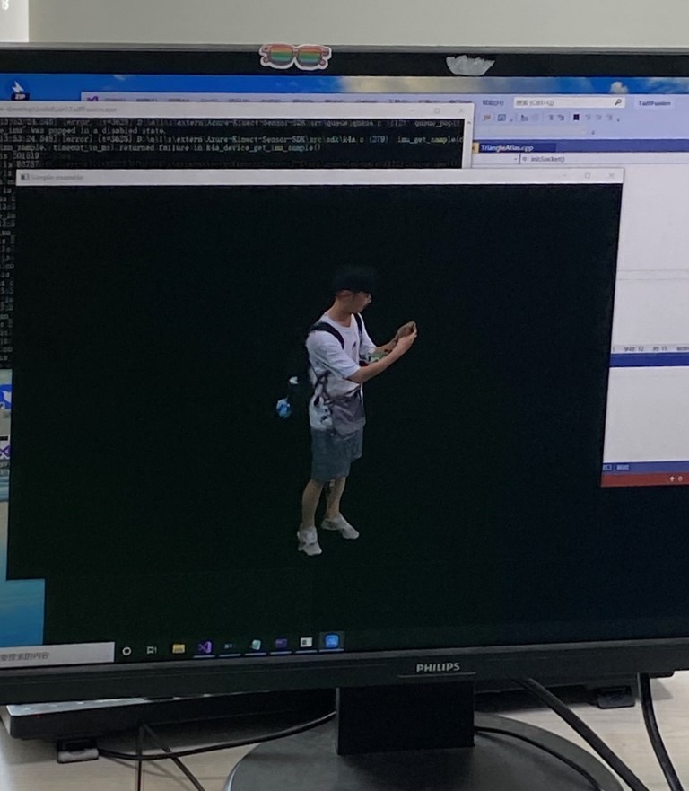 后,投显在屏幕上。通信与电子工程学院的师生们还佩戴着影创科技自主研发的“鸿鹄”MR智能眼镜,于实验室内自由走动,观测系统的延时、流畅度及成像完整度等情况。