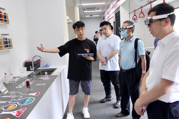 另外,在位于影创大厦一楼的智慧展厅内,师生们借助影创自研的JIMO MR智能眼镜和点云技术,体验了在不同场景下(包括博物馆、教育、医疗、工厂装配等)MR技术的深度应用。通过与现实场景相融合,以及自然手势、6DoF手柄等人机交互操作,师生们感受到了部分只可在科幻电影中出现过的高科技场景,期待着未来有一天,这些技术可以让我们的日常生活更便利。