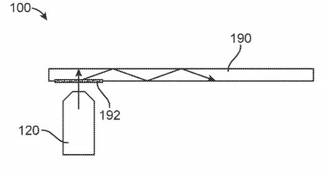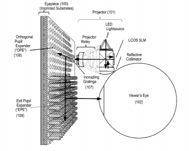 专利描述的设备包括具有第一波导表面和第二波导表面的波导。所述设备可以包括设置在第一波导表面和第二波导表面之间的第一体全息光耦合元件。第一体全息光耦合元件可构造成将入射光的至少一部分反射为反射光。入射光可以在全内反射(TIR)范围内相对于第一轴具有第一入射角,相对于第二轴具有第二入射角。