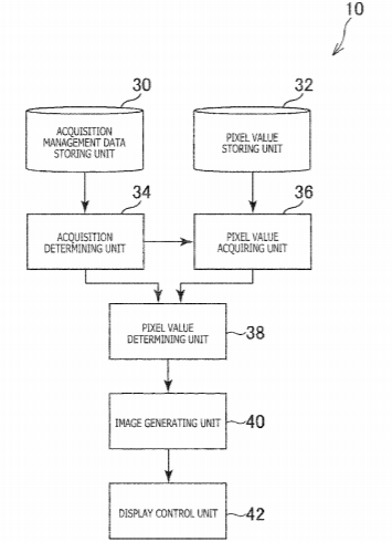 采集管理数据存储单元存储采集管理数据。像素值存储单元存储确定为具有从像素值存储单元获取的像素值的像素的像素值。获取确定单元基于获取管理数据确定是否从像素值存储单元获取每个像素的像素值。像素值确定单元对于确定具有从像素值存储单元获取的像素值的像素,确定从像素值存储单元获取的像素值作为像素的像素值。像素值确定单元针对确定为具有未从像素值存储单元获取的像素值的像素,确定预定值作为像素的像素值。