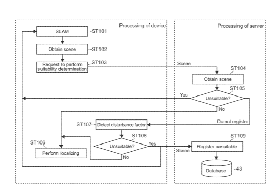 专利描述的信息处理设备包括场景获取单元和适宜性确定单元。场景获取单元配置为获取场景,场景包括配备有摄像头的可移动对象的位置和姿态信息、以及关于要成像的对象的三维形状的信息,要成像的对象由摄像头成像。适宜性确定单元配置为基于指示所获得的场景是否适合于定位处理的适宜性数据来确定场景的适宜性。