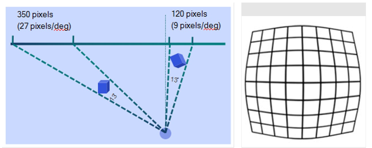 ,但后者并非必要项。大视场和平面投影会导致边缘过度渲染(见图2)。另外,异步时间扭曲用于对抗透镜畸变的桶形畸变会导致外围采样不足。所以为了减少这种过度渲染,今天的VR一体机会采用固定注视点渲染(FFR)。