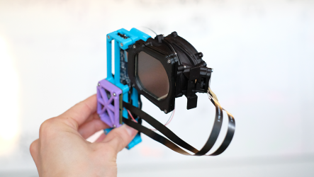FRL的研究人员在早期的探索中使用了Rift S。随着概念的演进,团队开始用Half Dome 2进行迭代,以构建今年在SIGGRAPH展示的研究原型。机械研究工程师乔尔·赫格兰(Joel Hegland)用最基础的裸架提供了一个大约50毫米厚的VR头显,以作为最新反向透视演示的基础。然后,光学科学家布赖恩·惠尔赖特(Brian Wheelwright)设计了一个装载到头显前端的微透镜阵列。