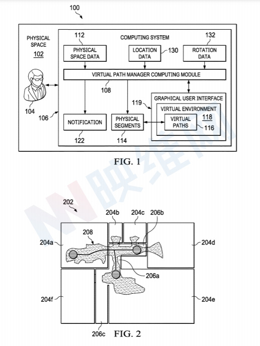 Facebook专利提出根据物理环境在VR中生成虚拟路径的方法