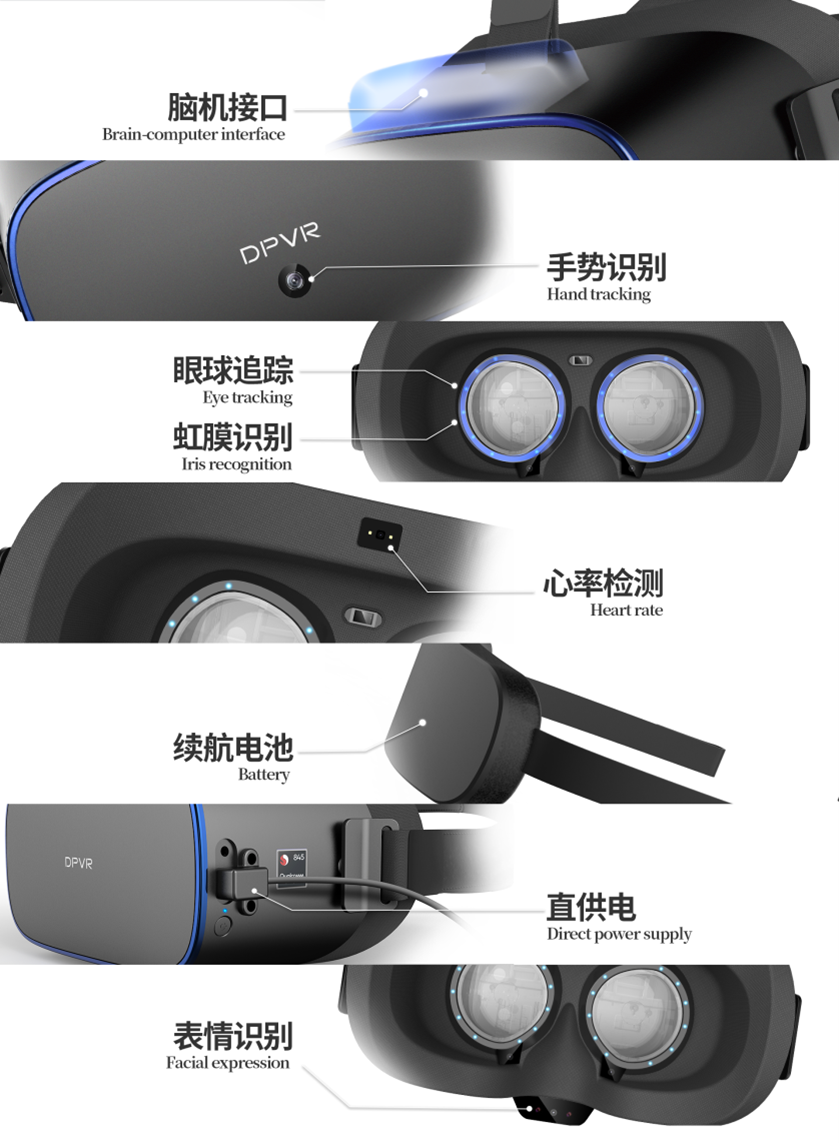 :根据客户的定制化需求,产品可外接脑机模组,比如,可以通过内置的传感器,检测大脑活动和血压等健康数据,帮助医疗保健行业的客户检测患者的健康数据。此外,根据不同行业的需求,大朋VR还可以提供诸如表情识别、直供电模块、续航电池模块等定制模块以及6DoF手柄套件,以满足客户的定制化需求。