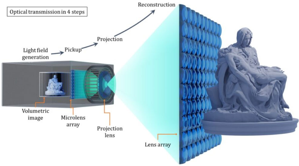 “光场”能够以与实际可见位置相对应的方式再现从对象反射的光线。由于自动立体光场显示器在不同的视角产生不同的图像,所以其需要处理大量的信息。这要求分辨率和显示图像尺寸之间形成折衷取舍。