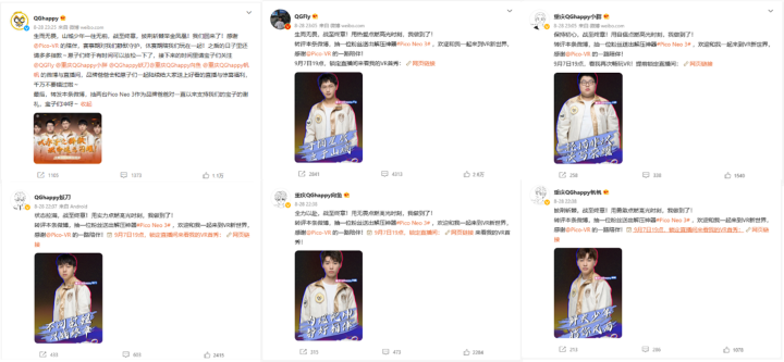 随着KPL上半年赛事告一段落,选手们也迎来了短暂的休整期,重庆QGhappy的队员们,也将再次拿起手中的解压神器Pico Neo 3,在虚拟现实的世界中放松身心,据悉,9月7日19:00,重庆QGhappy的5位队员将在虎牙直播间同时开播,令人兴奋的是,届时,重庆QGhappy将在VR的世界中一起复盘决赛录像,粉丝们还有机会目睹冠军队伍原班人马同玩VR的壮观场面,千万不要错过Pico与重庆QGhappy近期的微博与虎牙直播间信息哦。