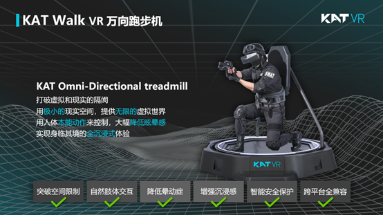 )。 KAT Walk 系列VR万向跑步机旨在打破物理空间的局限性,利用现实一平方米空间即可实现在虚拟世界中无限空间的行走。