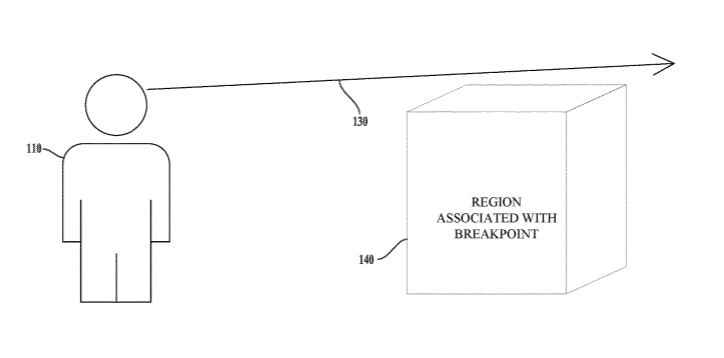 针对AR/VR头显提出了一种基于视图的断点相关方法。简单来说,开发者可以将应用的一个视图与断点关联,这样当开发者通过头显运行应用以进行调试,并且到达所述与断点相关联的断点时,系统可以触发调试界面。