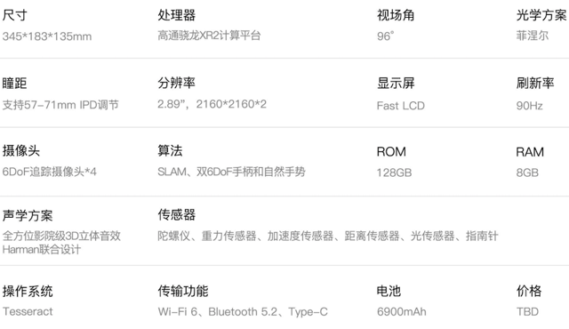 芯片是整个VR设备的核心,它承担着运算和存储的功能,还影响了整台设备的体积和功耗。高通骁龙XR2平台作为“骐骥”的心脏,其算力可实现90fps和6DoF头部追踪。