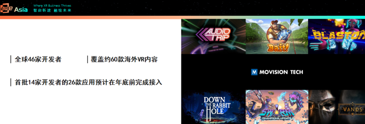 趣立将扶持国内优质XR开发者、并进行海外优质内容的引入及优质IP的存储及转授。除了国内内容引入团队外,海外则在北美设立了内容引入部门,目前已约46家海外开发者达成合作意向,首批预计引入60+款优质内容,后续将通过API形式输送到硬件品牌方应用商店,节省其内容引入成本。
