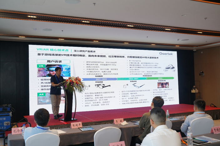 歌尔股份有限公司CEP高级研发总监王平平以XR技术的发展趋势为主要内容,围绕产品需求开展深入研究,系统性的介绍了歌尔在相关领域的技术研发布局及能力建设情况,明确基于应用场景的拓展VR整机对光学、声学等关键核心器件研发的主流方向,通过建立标准人因数据库及3D模型等手段,优化产品舒适性佩戴体验,并强化以视觉(空间定位, 手势识别, 通透模式, 眼球追踪, 表情识别), 语音, 触觉等技术为核心的沉浸感。最后,王平平总监对歌尔股份有限公司在XR技术领域的一站式 ODM 解决方案服务进行了介绍,从关键零件 、工程开发,再到生产制造的全产业链构建,推动虚拟现实创新生态建设。