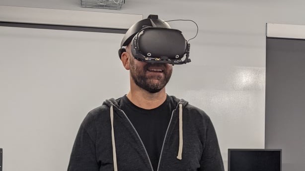 如图所示,这款设备看起来相当小巧细薄。博斯沃思进一步写道:“(Facebook Reality Labs Research负责人)迈克尔·亚伯拉什的团队在雷德蒙德进行的研究令人感到非常自豪,而我非常高兴能够尽早一窥能够支撑元宇宙的一些技术。我们研究了几个原型头显,而这只是其中之一。”