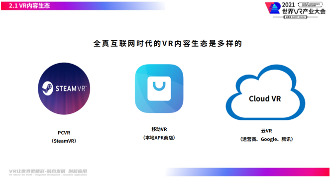 目前内容市场包含了三种内容形态,PC VR、移动VR本地商店、以及云VR。三种内容生态在市场上均扮演着不可替代的作用,为用户内容体验发挥着巨大的作用,但是三千兆互联网的时代已经来临,未来的VR用户将会出现爆发式增长,为了能够更好的保证用户的沉浸感,需要更高的算力支持,那么“云”的入局将会很有必要,而“端云协同计算”将会是我们未来要努力探索的内容生态发展方向。