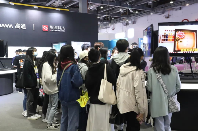 本次大会,影创科技除了在展位上展示“鸿鹄(Hong Hu)、即墨(JIMO)、Action One Pro”这三款大家耳熟能详的“明星”产品外,还集结了一批行业前沿的合作伙伴:趣立科技、蓝软宇影、达龙云电脑、千博信息、华东交通大学,展示了一系列覆盖文旅、医疗、教育、工业、游戏等领域的5G+XR产品技术内容和解决方案。
