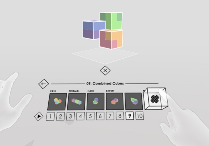 《方块主义(Cubism)》是一款玩法简单易懂但却极其考验玩家思维的VR益智闯关游戏。该游戏曾在oculus平台获得过88%的5分好评率,类似于VR版的拼图游戏,画风卡通简约,玩法轻松易上手。伴随着轻盈的旋律,玩家需要用各种形状的彩色方块拼成复杂的立体形状。并且随着关卡的推进,难度也将依次递增,逐渐让玩家全身心沉浸在解谜的世界中,将自己的思维开发至极限。