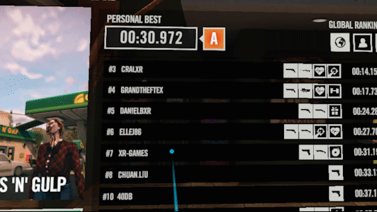 游戏最值得一提的玩法是“子弹时间”,玩家在连开两枪爆头后会自动激活“子弹时间”状态,可以将整个世界运行速度变慢,玩家可利用这个技巧优势来化解被近身的危机,得更多的操作空间,以此获得更高的游戏分数,也有网友戏称这段时间戏称为“贤者时间”。
