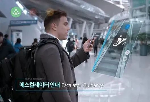 再来看平昌冬奥会当中的AR导航。游客从到达韩国机场、火车站开始便能使用由主办方推出的AR导航工具AR Ways进行导航,在指引下乘坐轻轨到达冬奥会场馆。