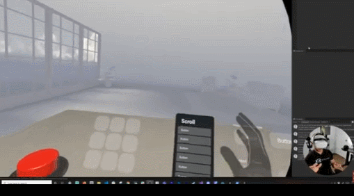 在图中,可以看到开发者在移动他的手,而在更大的显示区域,可以看到追踪开发者手部动作的虚拟手与潜在的头显用户界面的各个部分正在进行互动。