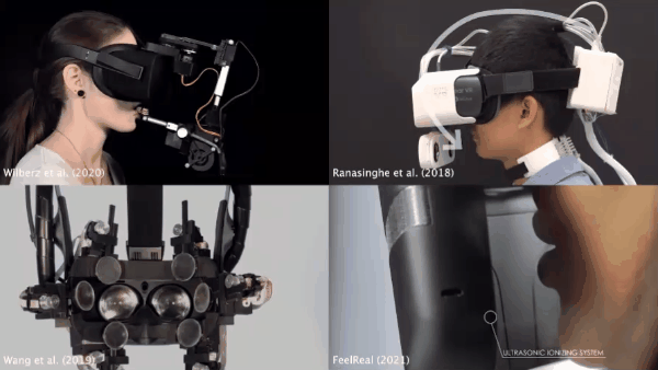 此外,市面上也存在部分针对面部或者嘴部的触觉反馈研究,不过它们由于体积太大,对于使用者而言极为不友好。
