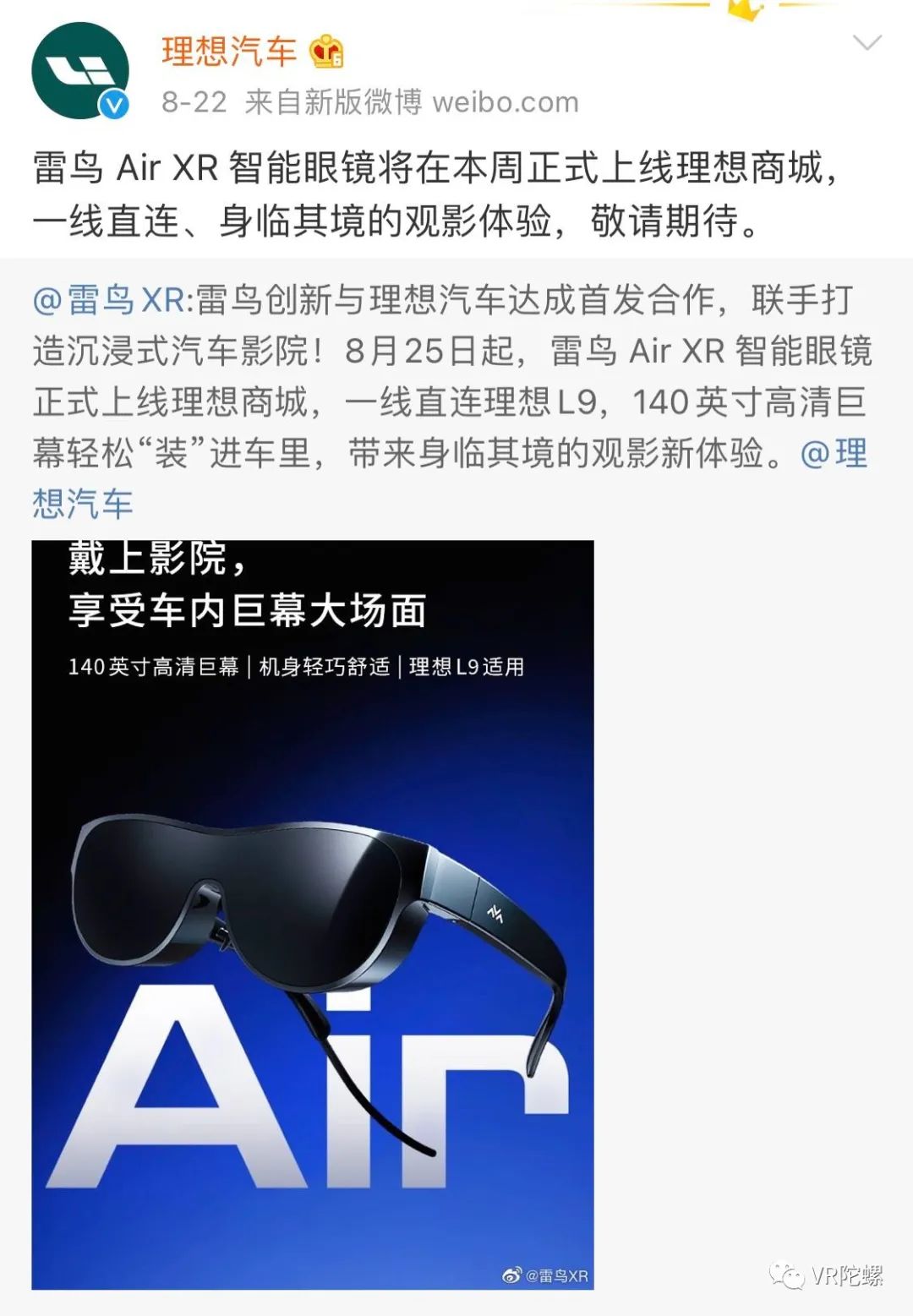 而在其他使用场景中,雷鸟创新也在不断探索,例如近日雷鸟创新与理想汽车达成合作,以便携观影这一卖点切入车载娱乐市场。据悉,雷鸟Air将上线理想商城并成为理想L9的官方配件,雷鸟 Air将能结合汽车内的4D沉浸影音系统,为用户带来身临其境的观影体验。Nreal在发布会上也宣称Nreal air将于9月初在蔚来车商城正式上线。