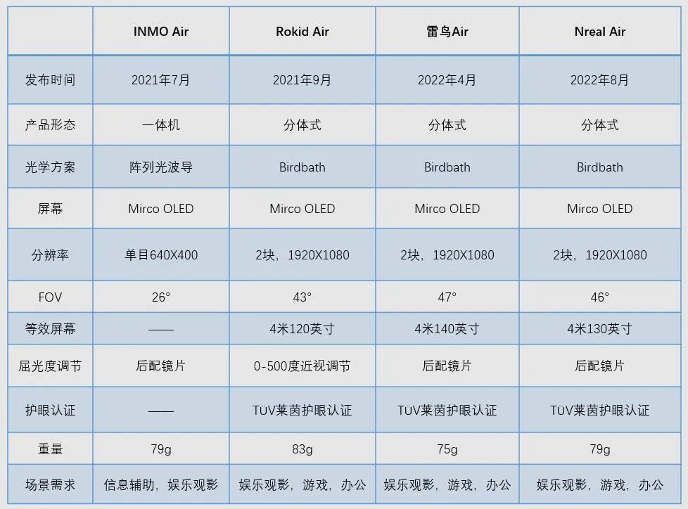 前面提到的雷鸟 Air、影目 Air、Rokid Air以及Nreal Air这四款产品,前面三款已经在国内消费市场正式发售,Nreal Air正在开启预售中。