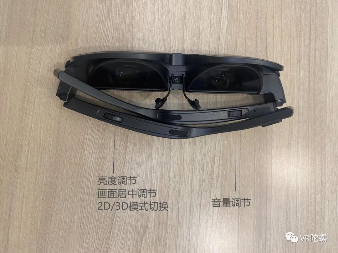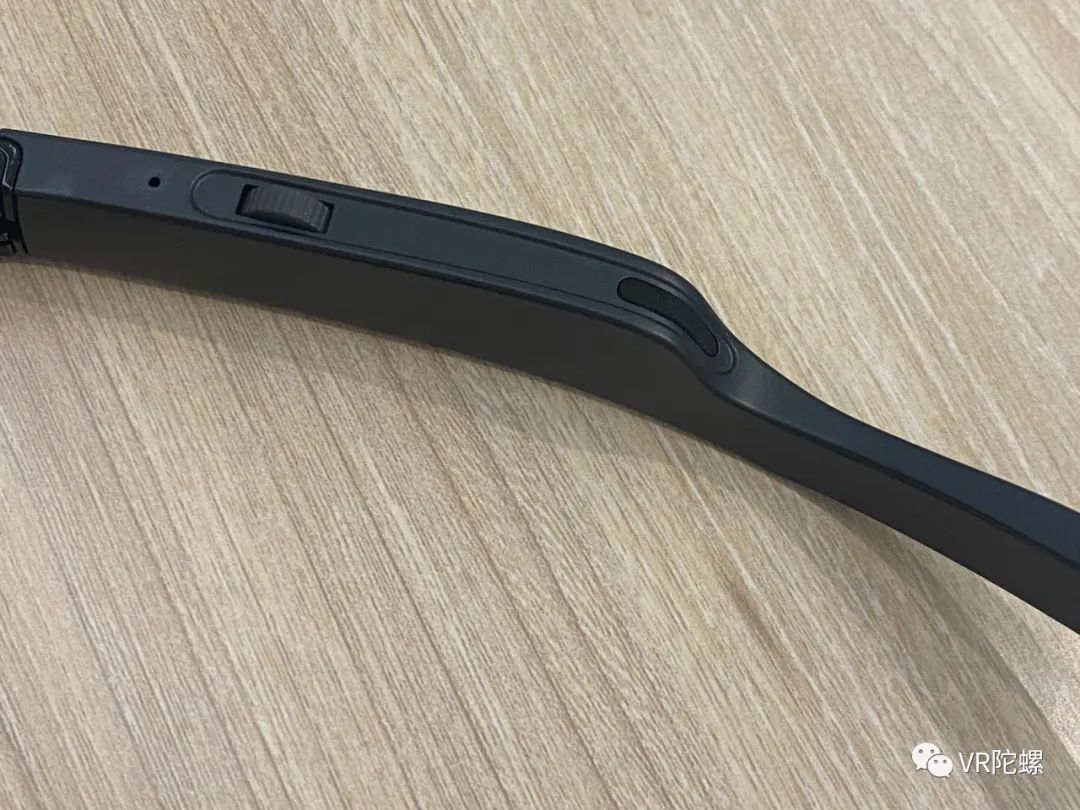 镜腿处,雷鸟Air 1S分别在左右两边加入了两颗拨轮按键,可用于调整音量大小以及画面亮度等;