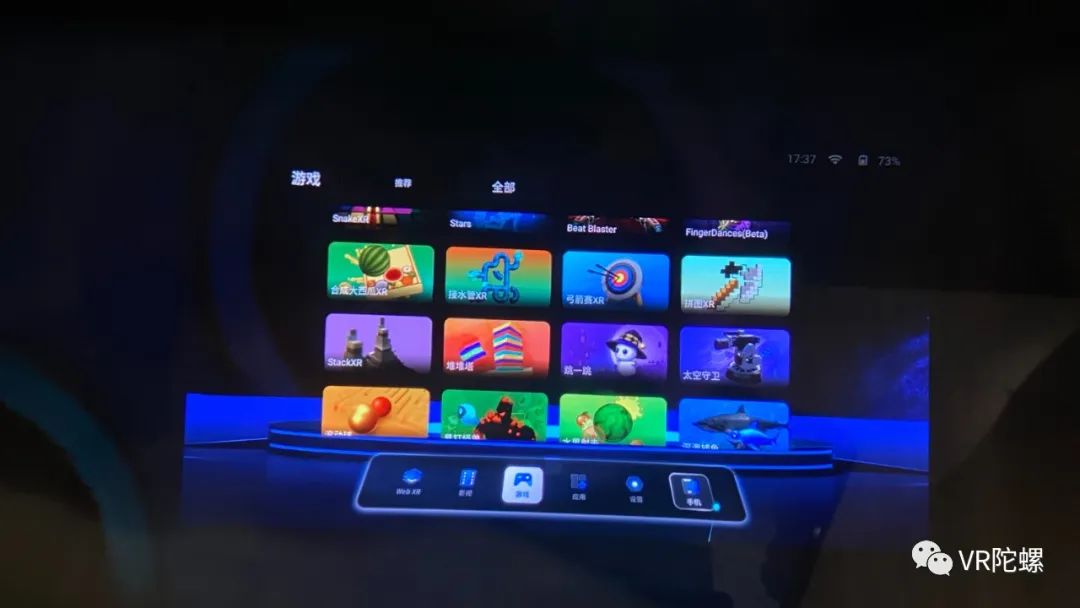 想要体验雷鸟Air 1S的更多独家功能,可以配合雷鸟的专属APP《雷鸟XR眼镜》使用。今年4月,VR陀螺曾对该款软件进行了评测,当时来看软件内置的影视以及游戏资源数量并不算多。