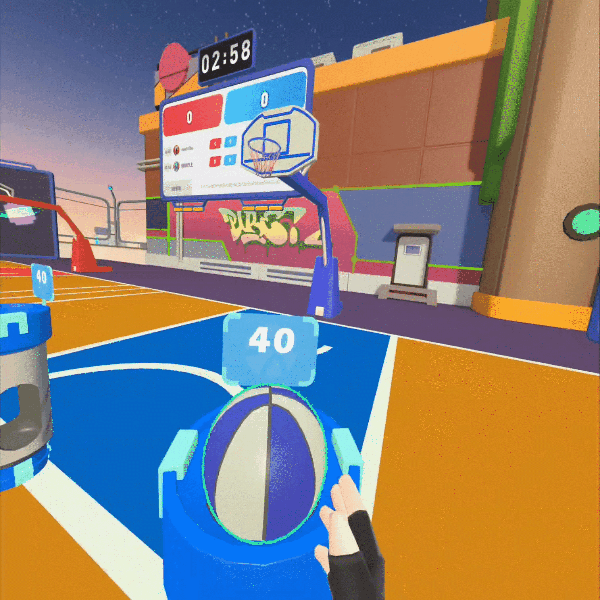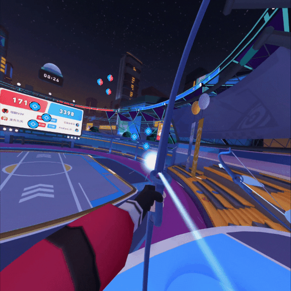 在以“团战”为娱乐方式的“一起来射箭”与“投篮大作战”中也是如此,自动匹配队友和对手之后,在原地便可以完成射箭或投篮动作。游戏的玩法也都十分简单,射中靶子得分,以及投篮得分的形式,累计分数更高的队伍获胜,并且在此过程中还可以与队友“连麦”或是通过挥手、比赞等动作进行交流,增强了互动性和趣味性。