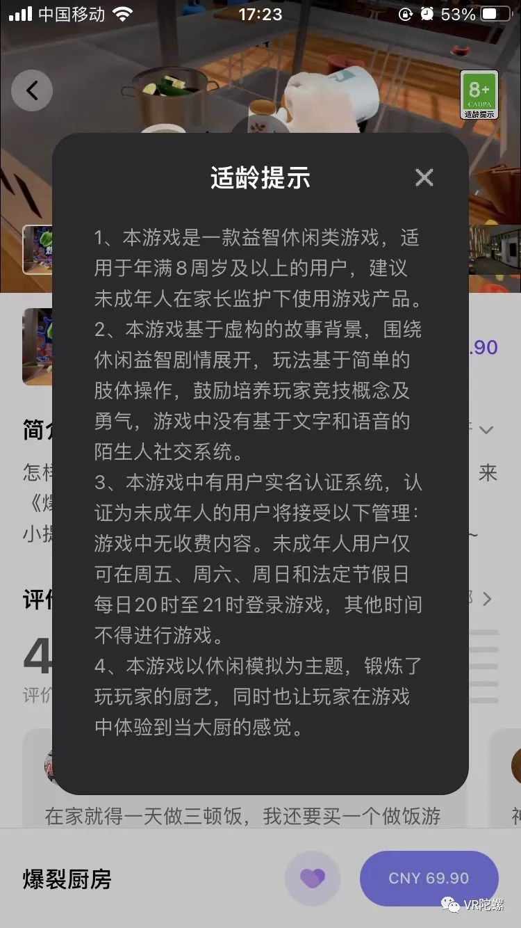 除了从上线内容和定价方面更符合国内玩家的消费习惯,通过公开的评分机制让用户给应用打分和评论,为他人提供购买参考外, PICO 也在“作品分级”方面走在了行业前沿。近日,PICO VR助手 App的作品介绍页面追加了“适龄提示”图标和一段言简意赅的核心内容描述。这不仅是响应国家政策,也是与国际接轨,有利于家长在购买内容时,第一时间了解到该作品是否适合自己的孩子体验。