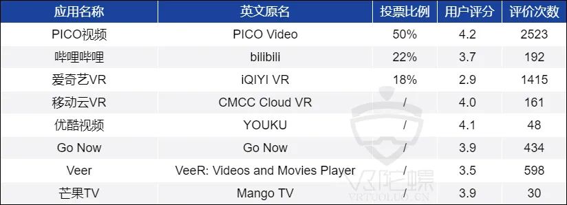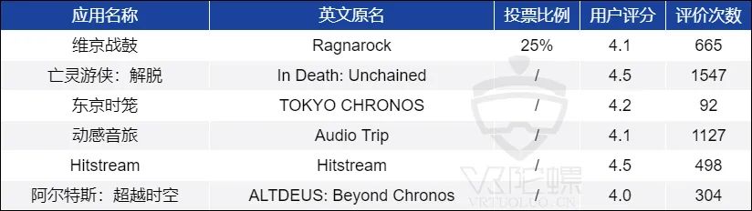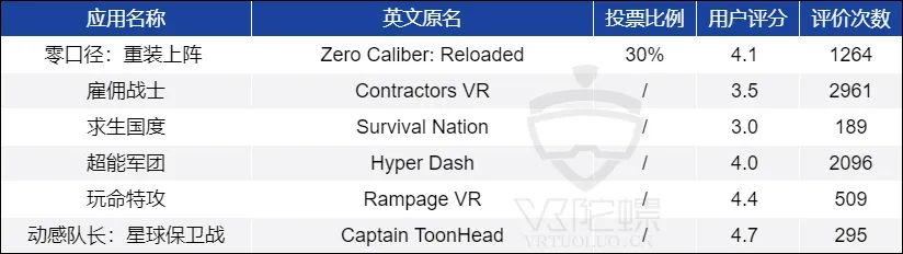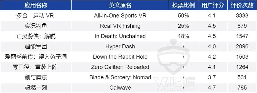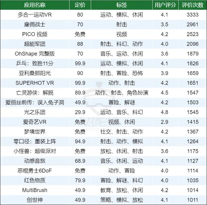 根据VR陀螺统计,PICO 商店中评价数TOP 20的作品如下表:
