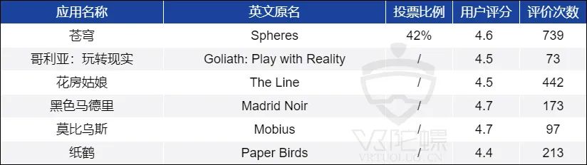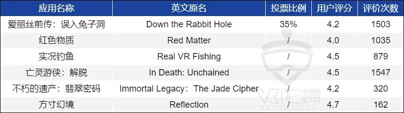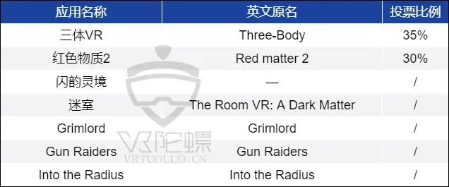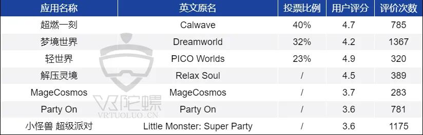 该榜单的结果均由用户投票产生,且因 PICO 用户账号需与一体机设备绑定,故基本能确保“一机一票”。首先来复盘一下本次评选中十大奖项的获奖情况。