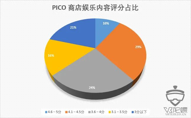 VR陀螺对 PICO 商店内“娱乐”和“应用”类内容的用户评分进行了统计,结果分别如下:
