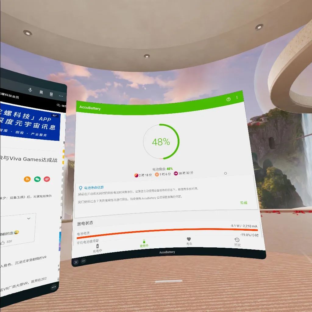 续航方面,根据第三方工具AccuBattery的信息,剩余48%的电量可以亮屏约1小时6分钟,续航与官方宣称的数值差异并不大,关闭面部追踪功能还可以换取一定的续航提升。