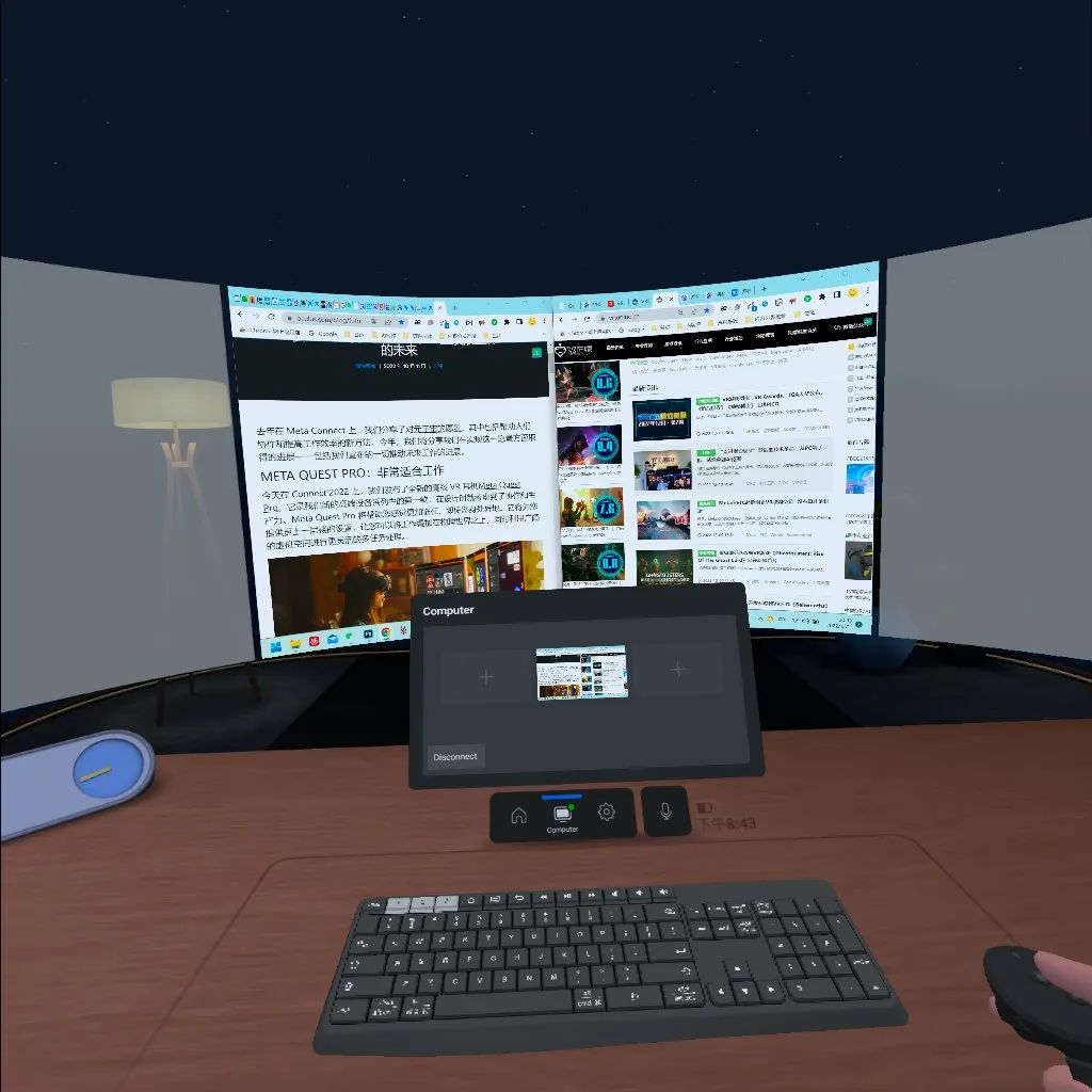 如果计划可行,那么仅凭一台Quest Pro,以及一套蓝牙键鼠设备,便能满足我的大部分日常办公需求。不过后来发现,这并没有想象中那么简单。
