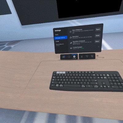 前面提到虚拟桌面右侧有一个彩色透视开关,打开开关后,可以查看真实桌面上的键鼠等物品。不过由于Quest Pro透视的分辨率较低,所以即便开启该功能,也难以看清键帽上的信息。