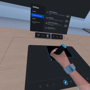 另一个按钮则是桌面白板开关,打开后,桌面选定区域会化身为一个虚拟白板。Quest Pro产品包装中内置了两枚用于会议书写的笔尖,将其手柄倒置,安装笔尖后,手柄可以充当一个手写笔使用,不过它的握持舒适度一般。